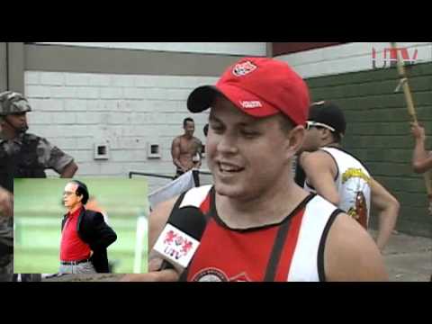 Repórter Renê Ferreira em ação na primeira partida da final do Campeoato Baiano em 2011. Entrevistas com os torcedores, Tui e demais torcidas que invadiram o Estadio Joia da Princesa em Feira de Santana. Bahia de Feira 2 x 2 Vitória.